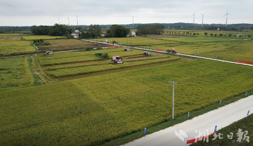 秋天的田野很美,吉丘(Jingchu)土地上的粘性米饭很香。在耶钦(Yingcheng),该国在该国的第一个真正生产大米的城市,408,000吨粘米叶是绿色和黄色的。大型农民正在抓住阳光明媚的天气来进行机械收割,以确保颗粒有库存。