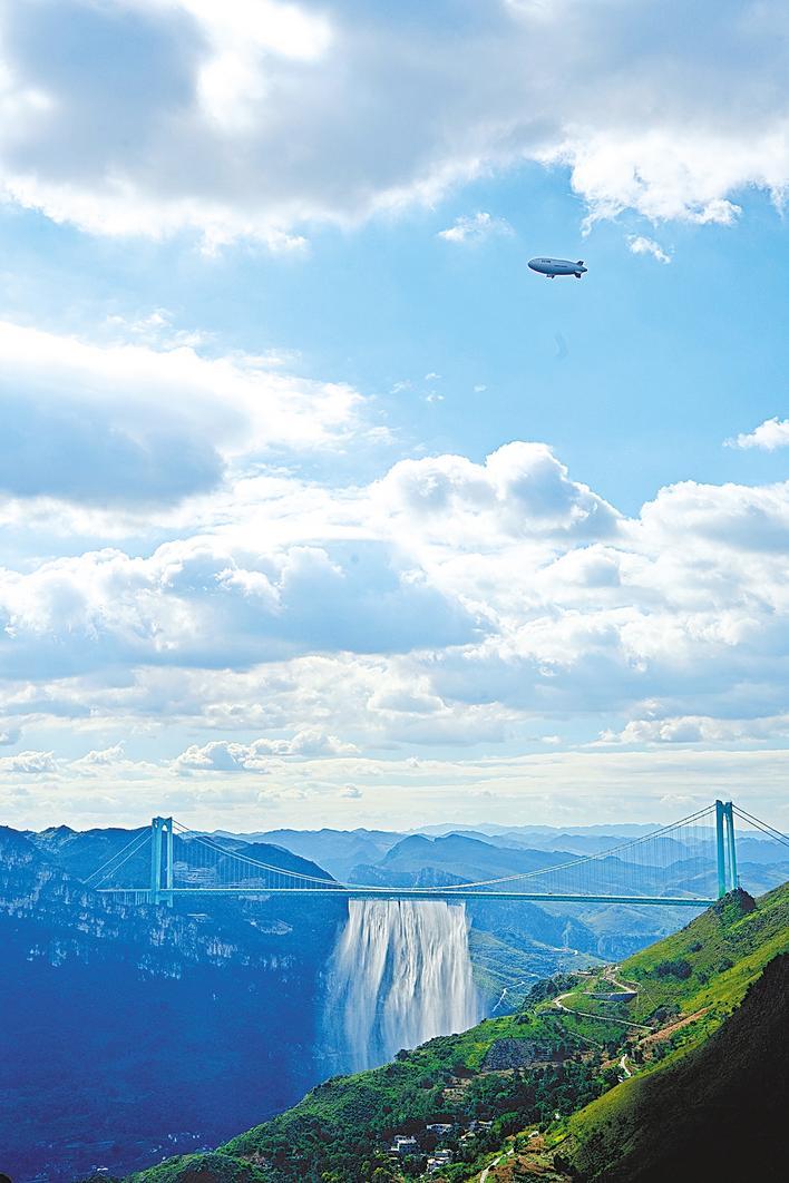 “ Xiangyun” AS700载飞艇飞往“世界最高桥” Huajiang Canyon桥。 (照片由王·吉凯(Wang Jikai),通讯员梅·乔尼安(Mei Chunyan),全媒体记者)